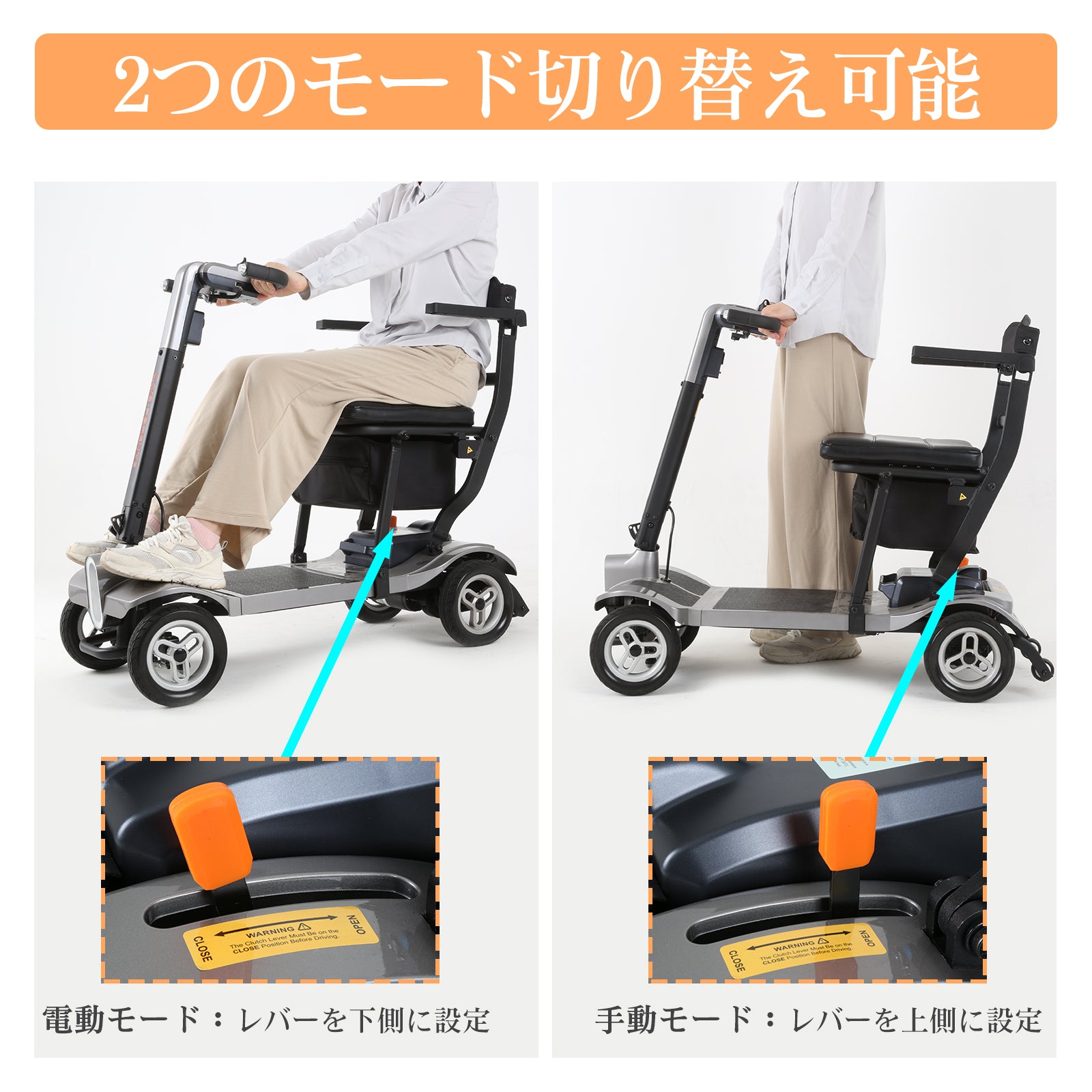 Care-Parents 電動車椅子 電動シニアカート 折り畳み 組み立て不要 軽量17.4kg コンパクト リチウムイオン電池 電磁ブレーキ 運転免許不要 耐荷重125kg 前照灯付き 高齢者用 歩行補助(CP-DF100)